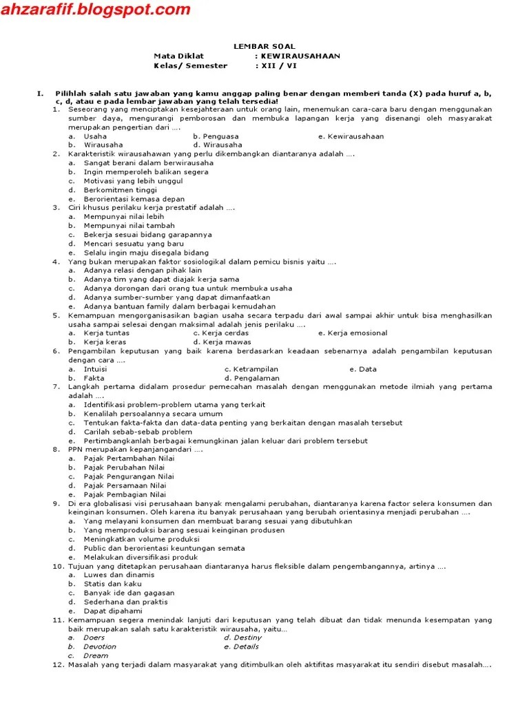 1 Soal Kewirausahaan Kelas X 1 Ide Kereatif Dan Inovatif Seorang Wirausaha Muncul Dari A Imitasi Dan Kereatif B Im Words Tutorial Dan from i.pinimg.com Masalah terjadinya aneka warna makhluk c. Download bank contoh soal bahasa indonesia kelas 10 semester 1 dan semester 2 kurikulum 2013 soal eassy pilihan ganda & kunci jawabannya. Makalah materi soal kewirausahaan kelas 10 diterangkan mulai dari pelajaran sd, smp, atau sma min, mts, ma dan smk lengkap dengan contoh soal 10. Agama, pemerintah, dan sumber daya alam b. Contoh soal pkn kelas 10. Prakarya dan kwu kelas/jurusan : Sebelumnya, saya ucapkan selamat belajar ya? Ujian ahir semester ganjil ma tahfidzul qur'an braja selebah tahun pelajaran 2014/2015 nama kelas 10 sma prakarya dan kewirausahaan siswa.