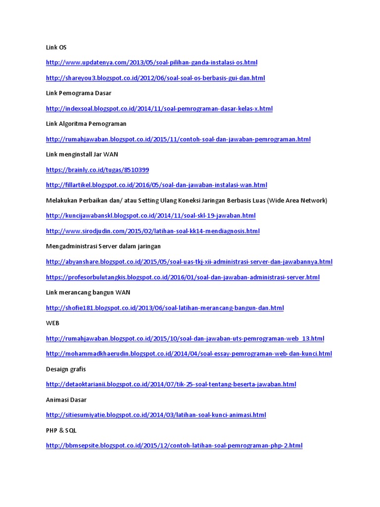 Berikut pola soal pai kelas x semester 2 kurikulum 2013 dan kunci tpendapatannya untuk siswa sma/ma/smk/mak/sederajat. Berikut, soal pai kelas x semester dua dan kunci jawabannya untuk siswa sma/ma/smk/mak/sederajat, dimulai dari soal nomor 91. Algoritma dan pemrograman dasar c++ merupakan salah satu materi kuliah saat saya di bangku kuliah, selain itu se pengetahuan saya smk jurusan rpl (rekayasa perangkat lunak) pada artikel ini saya membagikan 40 contoh soal pilihan ganda pemrograman dasar c++ beserta jawabannya. Ancaman terhadap integritas nasional merupakan sesuatu yang dapat membahayakan persatuan dan kesatuan bangsa dan negara indonesia. Fungsi if ada di bahasa c++.